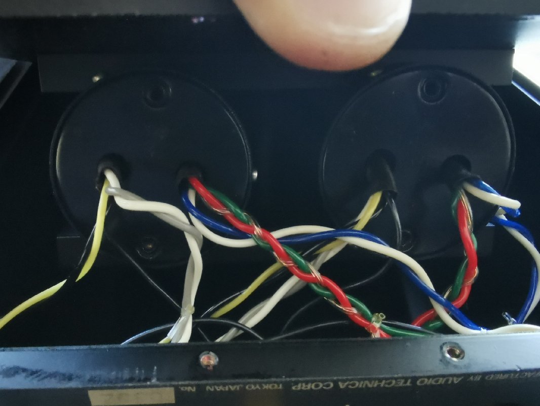 A l'intérieur 2 énormes transfos, et la possibilité de brancher 2 bras à conditions qu'une des cellules soit d'une impédance de 3 ohm ou moins et l'autre de 20 ou 40 ohm. Et 2 sorties correspondantes bien évidemment...